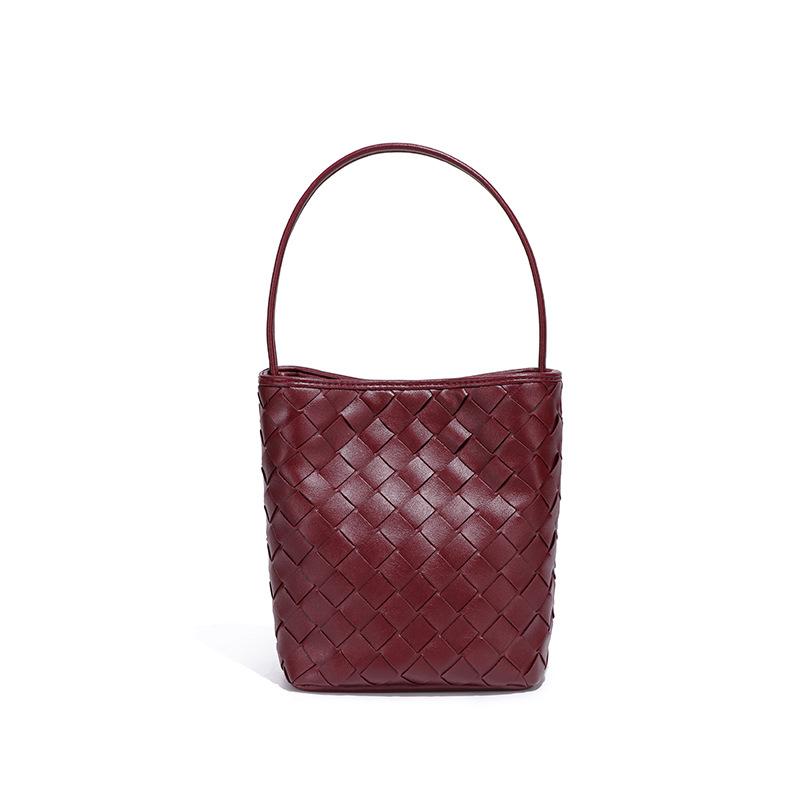 Сумка ручной работы для женщин, маленькая и легкая, сумка через плечо на одно плечо, однотонная текстура, очаровательная сумка-ведро