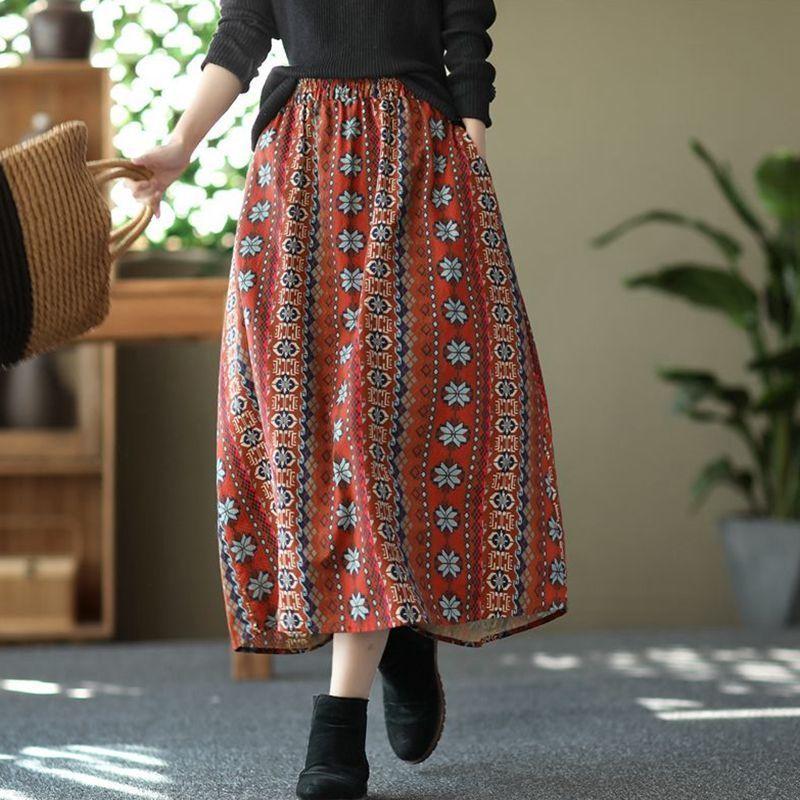 Весенняя и летняя одежда, утягивающая и с высокой талией, юбка А-силуэта средней длины, этнический стиль, юбка средней длины для женщин — купить товар онлайн с бесплатной доставкой по всему миру!