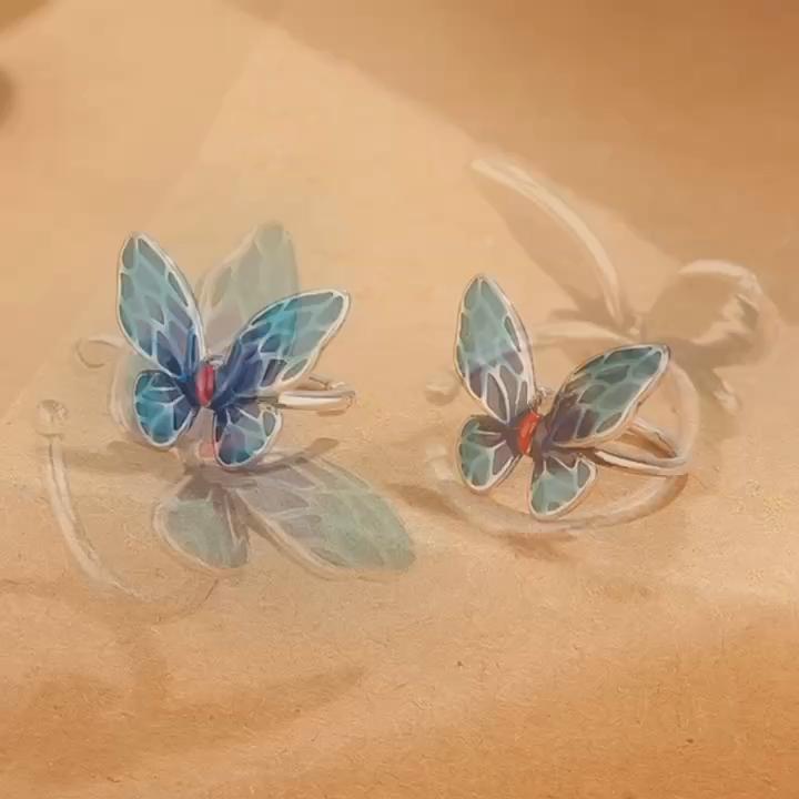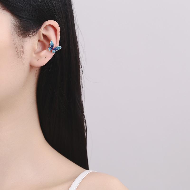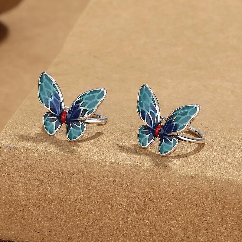 Синие серьги-клипсы в виде бабочек из перегородчатой эмали для женщин, элегантные легкие модные аксессуары
