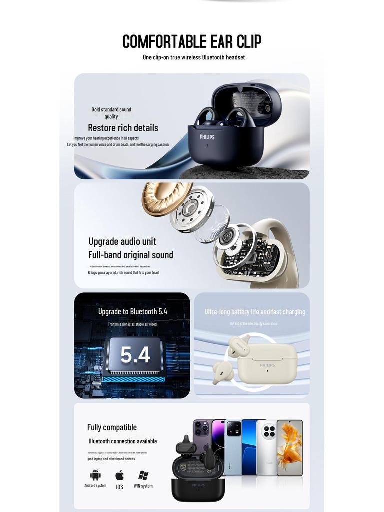 Беспроводные спортивные наушники-вкладыши Philips TAT2469 Bluetooth с открытым ушным каналом