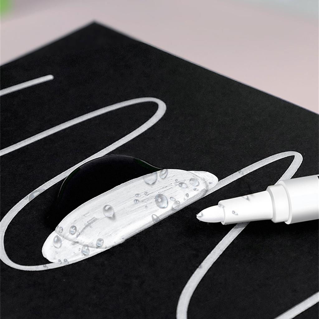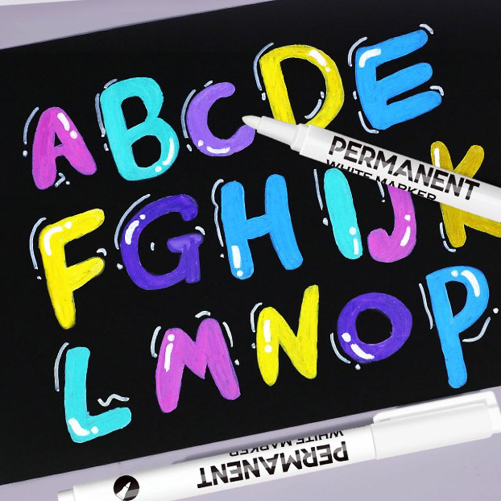 Откройте для себя универсальность наших белых перманентных маркеров-ручек с тонким кончиком 0,2 мм для точного и детального рисования на различных поверхностях, таких как черная бумага, ткань, кожа, камень, дерево, металл, пластик, керамика, горный камень и стекло.