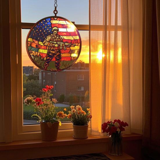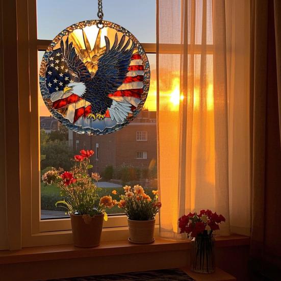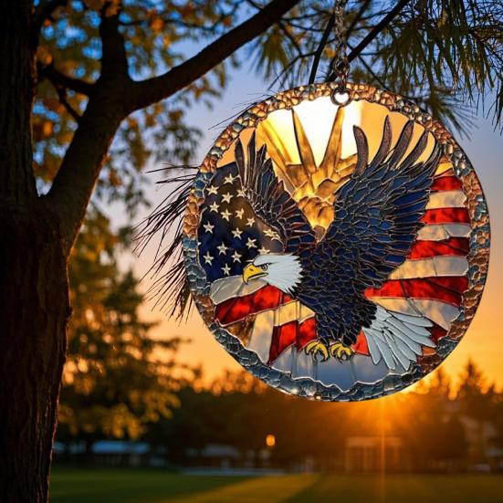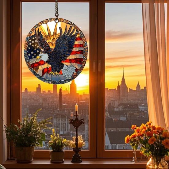 Добавьте патриотического очарования в интерьер вашего дома с помощью этой потрясающей акриловой подвески на тему Дня независимости.. Это подвесное украшение с замысловатым узором из звезд, полос и ярких красных, белых и синих цветов обязательно создаст праздничную атмосферу в любом помещении..