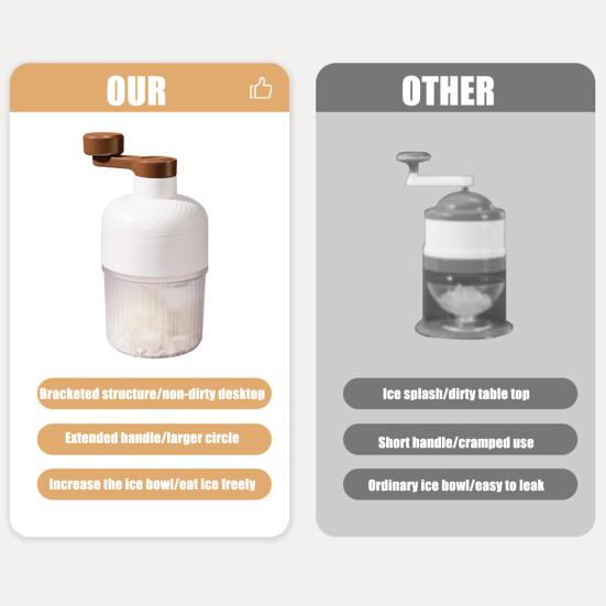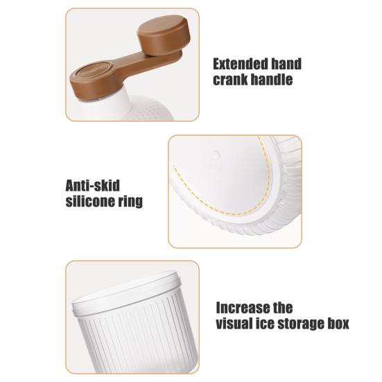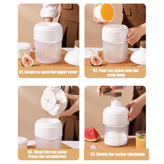 Конструкция рукопожатия для точности: Эта ручная машина для резки льда, имеющая конструкцию, напоминающую ручное встряхивание, позволяет легко готовить смузи и струженый лед.. Просто поверните джойстик вручную, чтобы мелко нарезать лед и получить освежающие и восхитительные напитки.