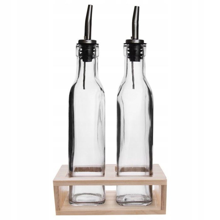 Bouteilles en verre - Non spécifié - 300 ml - Distributeur pratique - Support en bois - Transparent