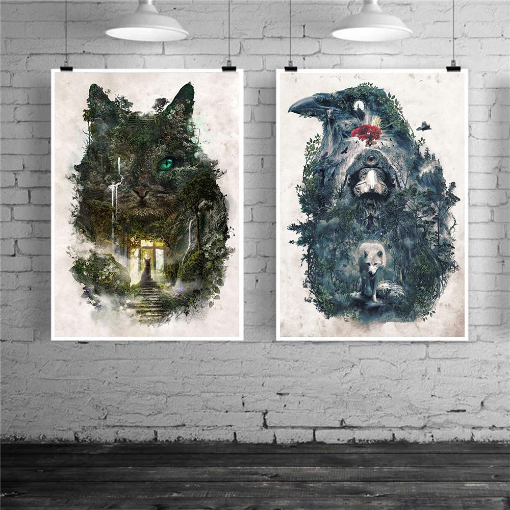 Царство кошек Птица Волк Картина на холсте День или ночь Пейзаж и постеры с животными Печать Настенные художественные фотографии Идеальное украшение для гостиной Домашнее украшение Куадрос — купить товар онлайн с бесплатной доставкой по всему миру!