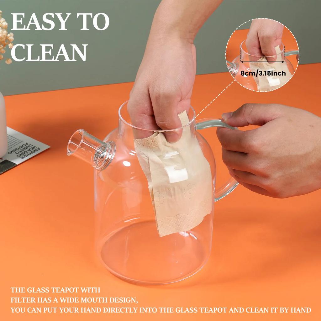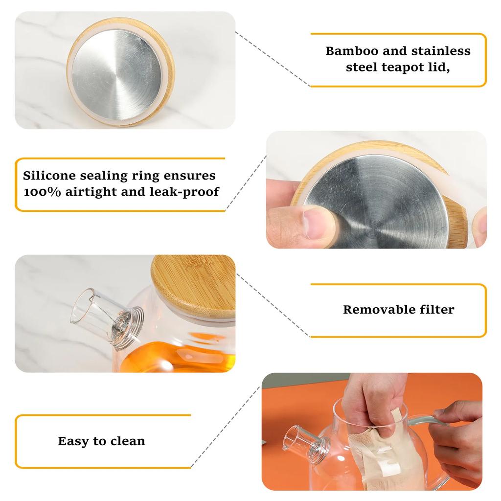 Стеклянный кувшин с бамбуковой крышкой 1800 мл Стеклянный кувшин для воды Жаростойкий стеклянный кувшин с ручкой Листостойкий стеклянный чайник с Наной