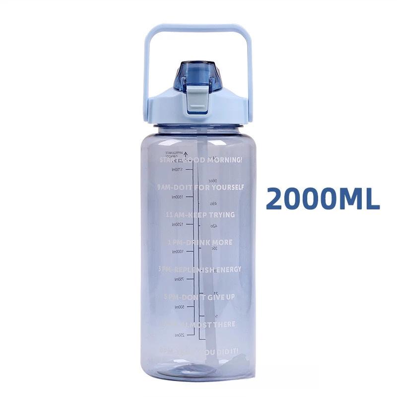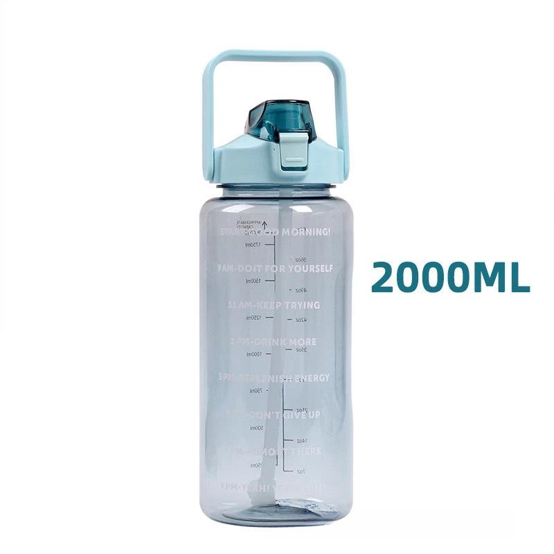 2L Portable Water Bottle Large Capacity Plastic Straw Water Cup Drink Bottle with Time Marker for Outdoor Sports Fitness Summer
