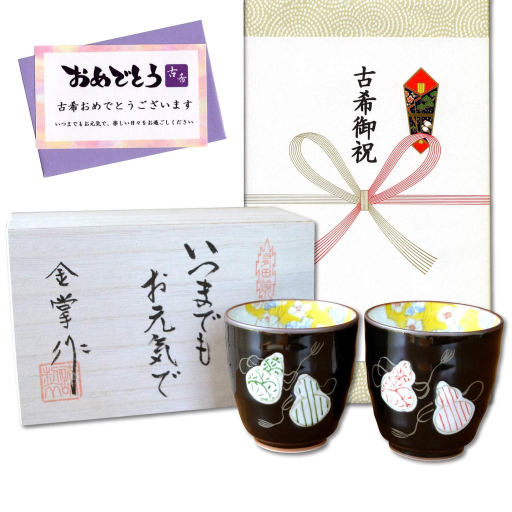 Празднование древнего талисмана на удачу подарок для хорошей пары изделий Арита, шесть тыквенных подарочных карт и открыток с посланием в деревянной коробке, время, здоровье, чайные чашки,