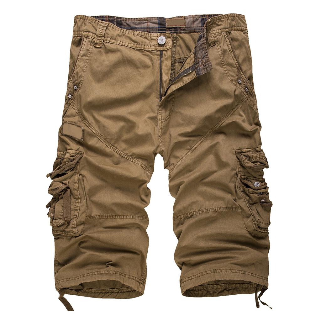 Мужские летние шорты-карго с несколькими карманами. Мужские повседневные модные однотонные свободные шорты-карго.