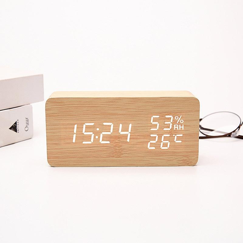 Голосовое управление Деревянный цифровой будильник TEMP Влажность Дата Ночной режим Настольные часы 3 будильника Память отключения питания 12/24H LED часы