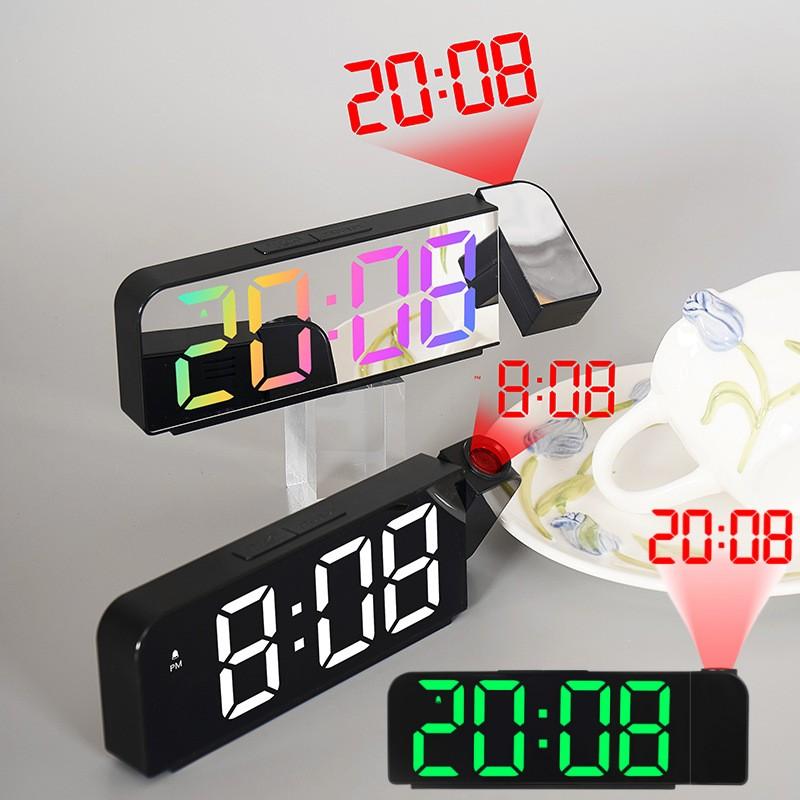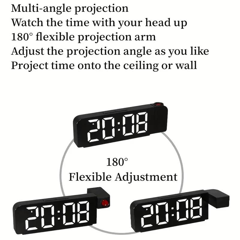 Зеркало с вращением на 180°, цифровая проекция, будильник, светящийся светодиод, большой цифровой дисплей, дата, время, температура, электронный, несколько цветов