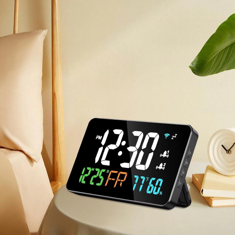 Tuya WiFi настольные часы календарь интеллектуальный термометр гигрометр с цифровым светодиодным дисплеем поддержка WIFI автокалибровка