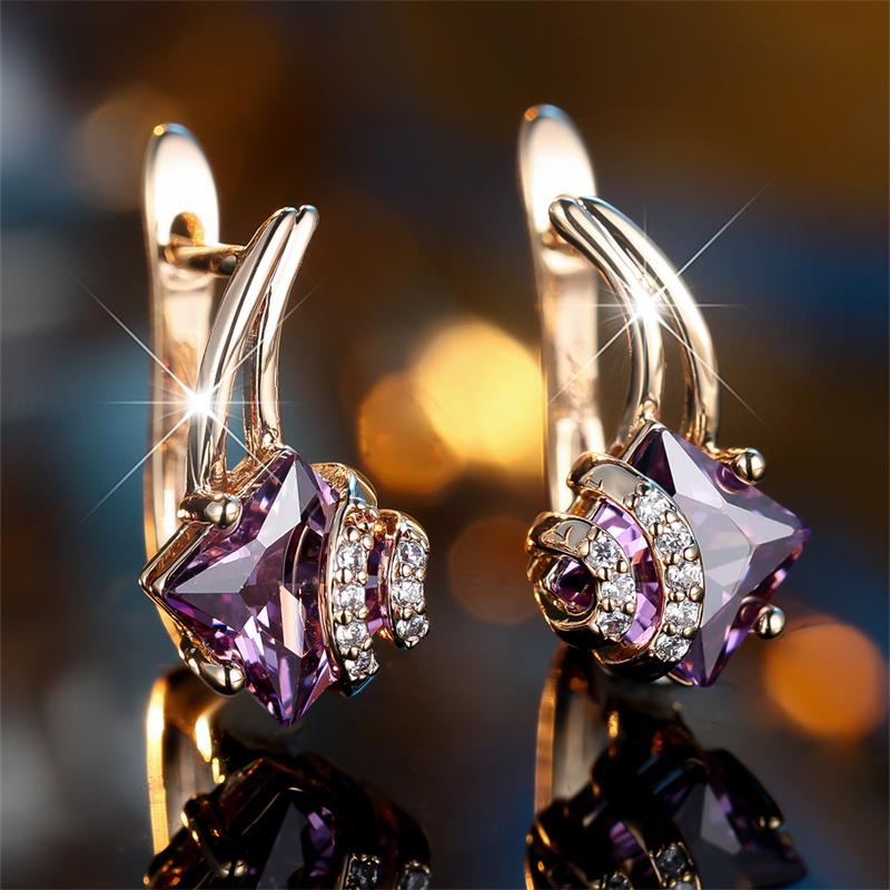1 пара сережек-капель из золотистого цвета с квадратной огранкой и фиолетовым камнем, ювелирные изделия в подарок на День святого Валентина