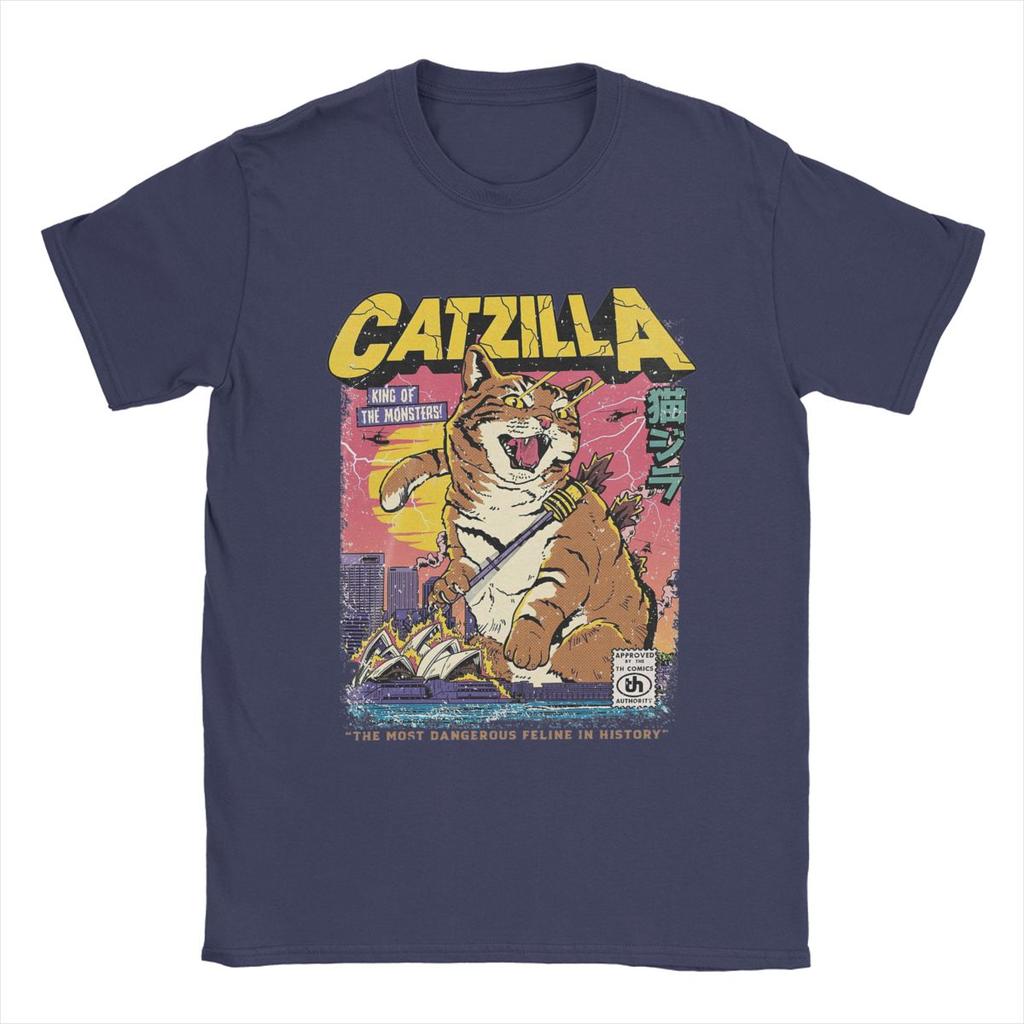 Футболка Catzilla, мужские хлопковые потрясающие футболки с круглым вырезом, футболки с коротким рукавом, оригинальная одежда