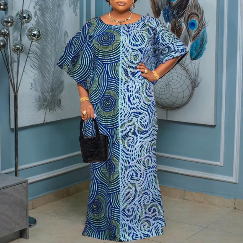 Характеристики:Платье с геометрическим узором и круглым вырезом, рукавами пять четвертей.
