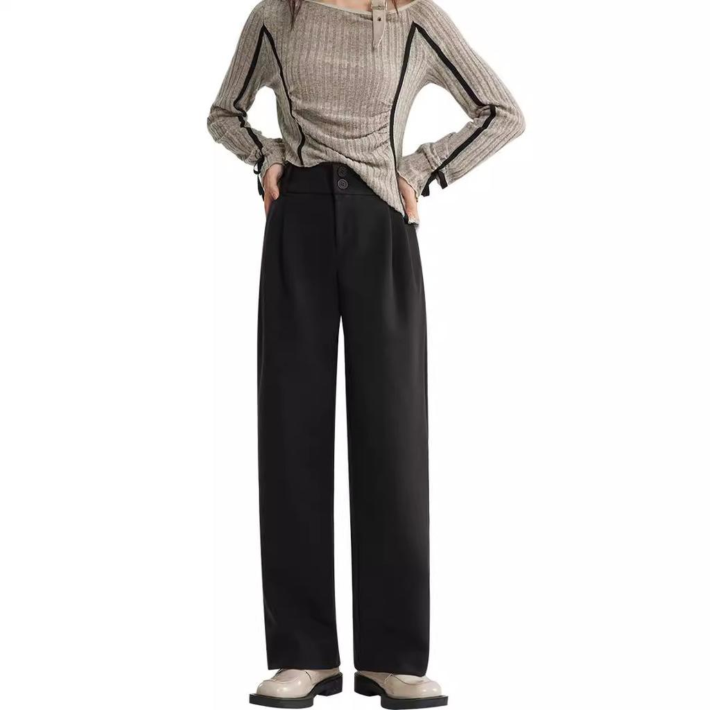 Дизайнерские шерстяные брюки-костюм с высокой посадкой для женщин на осень и зиму. Новая прямая свободная зауженная версия брюк, облегающих бедра, с широкими штанинами.