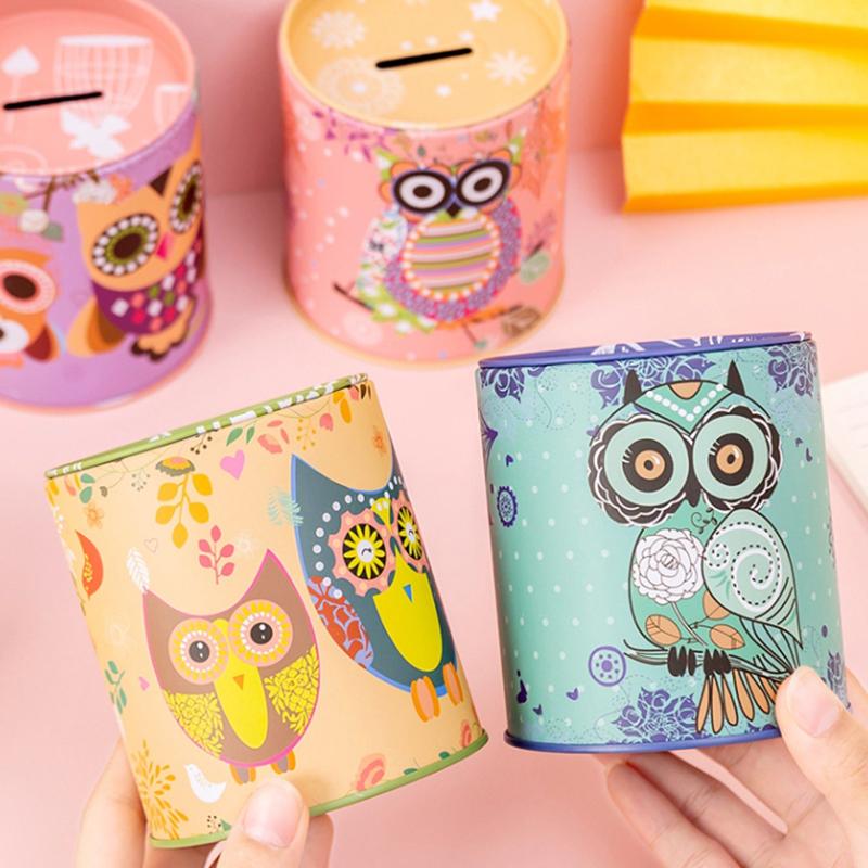 Сова Металлическая Копилка Копилка Хранение Ювелирных Изделий Мини Жестяная Подарочная Коробка Милый Органайзер Сбережения Аксессуары Для Дома Украшения Гостиной