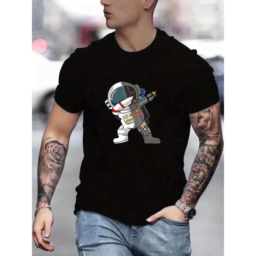 Футболки с круглым вырезом и принтом астронавта, повседневные футболки, удобные топы с короткими рукавами, мужская летняя одежда