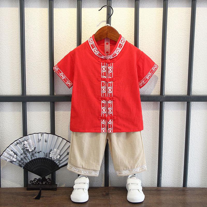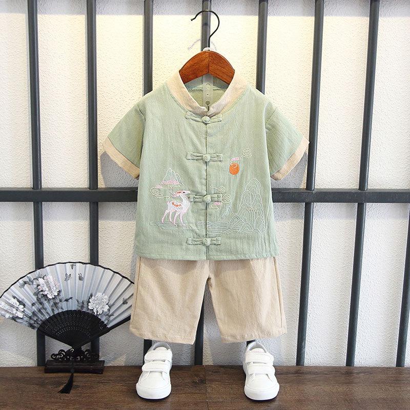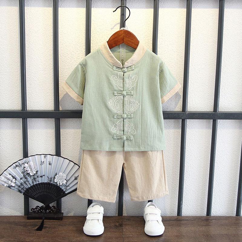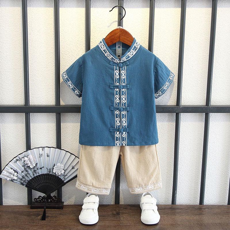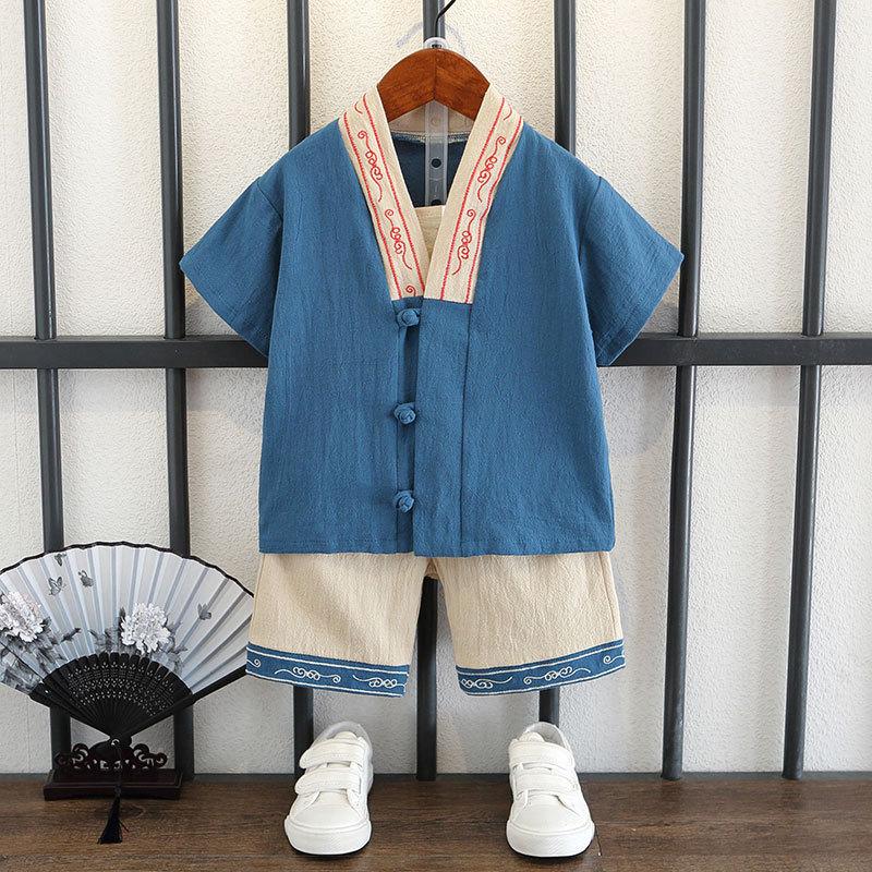 Детский костюм с короткими рукавами для мальчиков в китайском стиле, летний костюм для детей в стиле Тан, этнический детский хлопковый и льняной ханбок, классная одежда