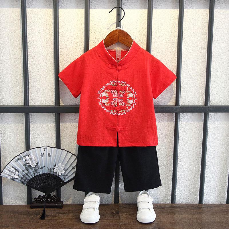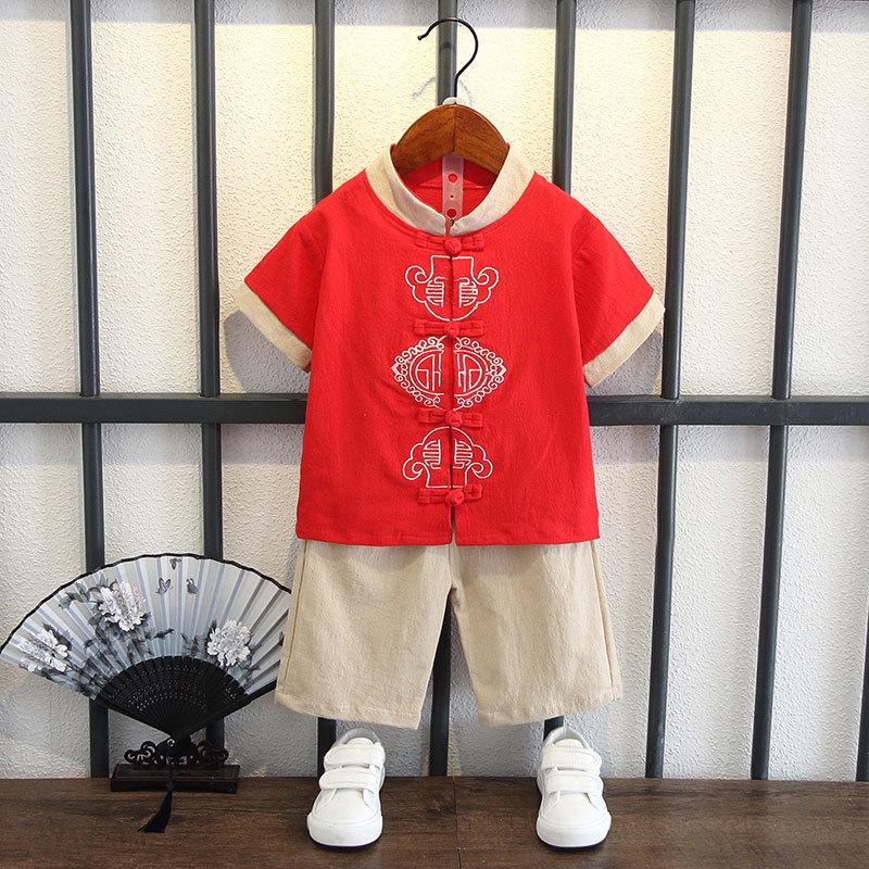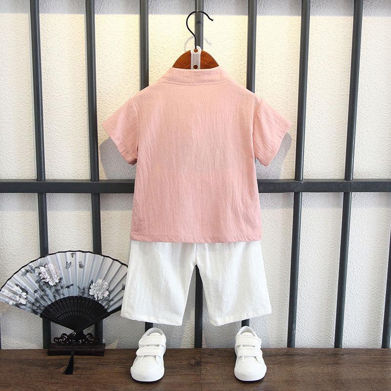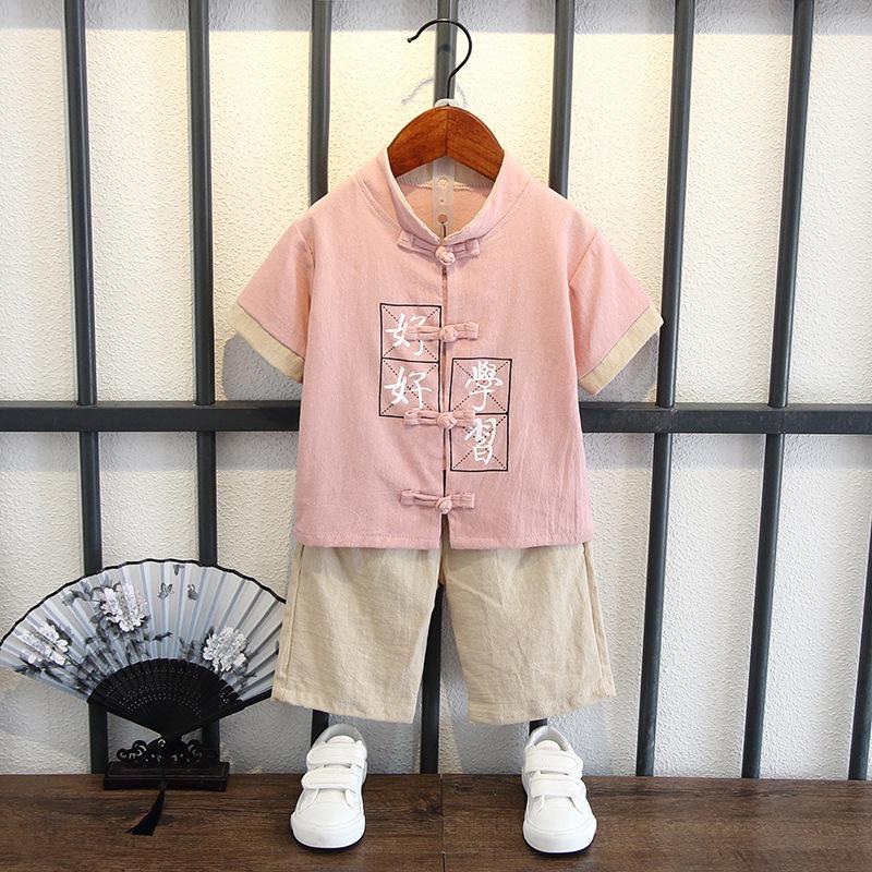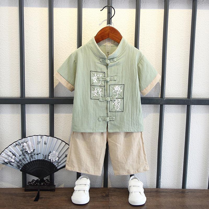 Детский костюм с короткими рукавами для мальчиков в китайском стиле, летний костюм для детей в стиле Тан, этнический детский хлопковый и льняной ханбок, классная одежда