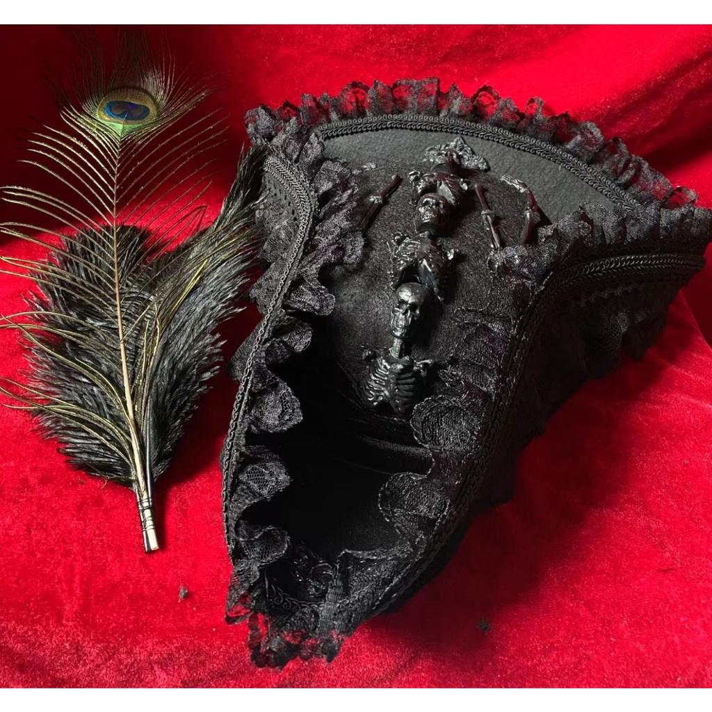 Шляпа Пиратов Карибского моря, ретро-череп на Хэллоуин для выступления на сцене COS для мужчин и женщин, одинаковая взрослая треугольная шляпа