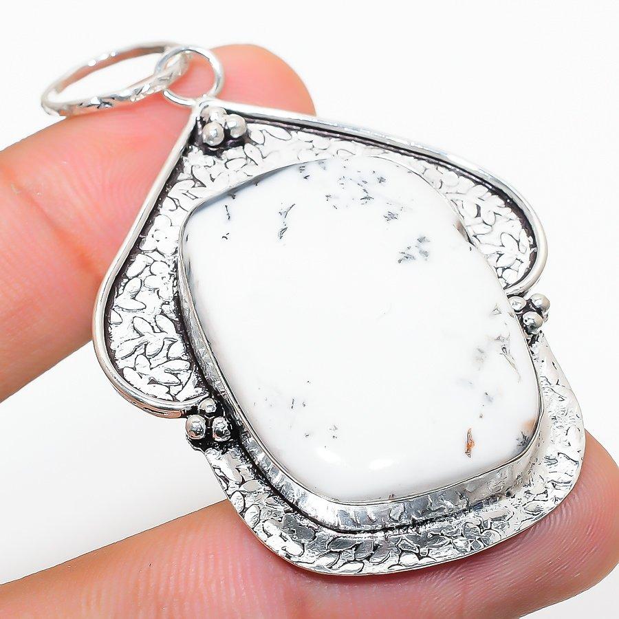 Дендритовый Опал, Белый Топаз 925 Стерлинговое Серебро Ювелирная Подвеска 2,52"