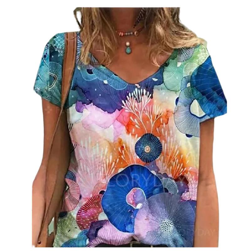 Летний топ с V-образным вырезом и 3D-цветным принтом, модные повседневные женские футболки с короткими рукавами — купить товар онлайн с бесплатной доставкой по всему миру!