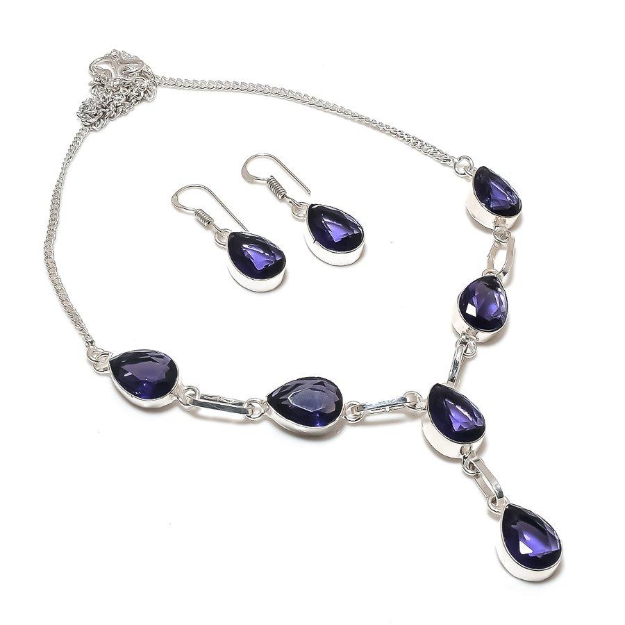 Аметистовое ювелирное ожерелье ручной работы из стерлингового серебра 925 пробы 18 дюймов e1Z35