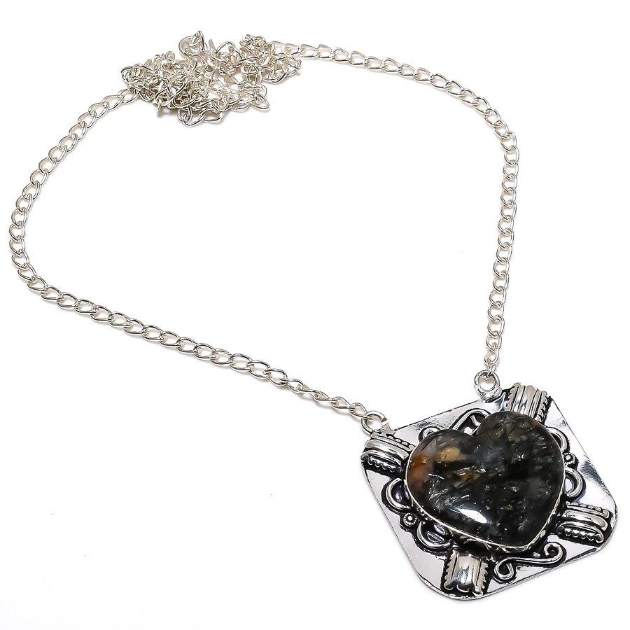 Черный рутил ручной работы 925 стерлинговое серебро ювелирное изделие ожерелье 18" C0Z57