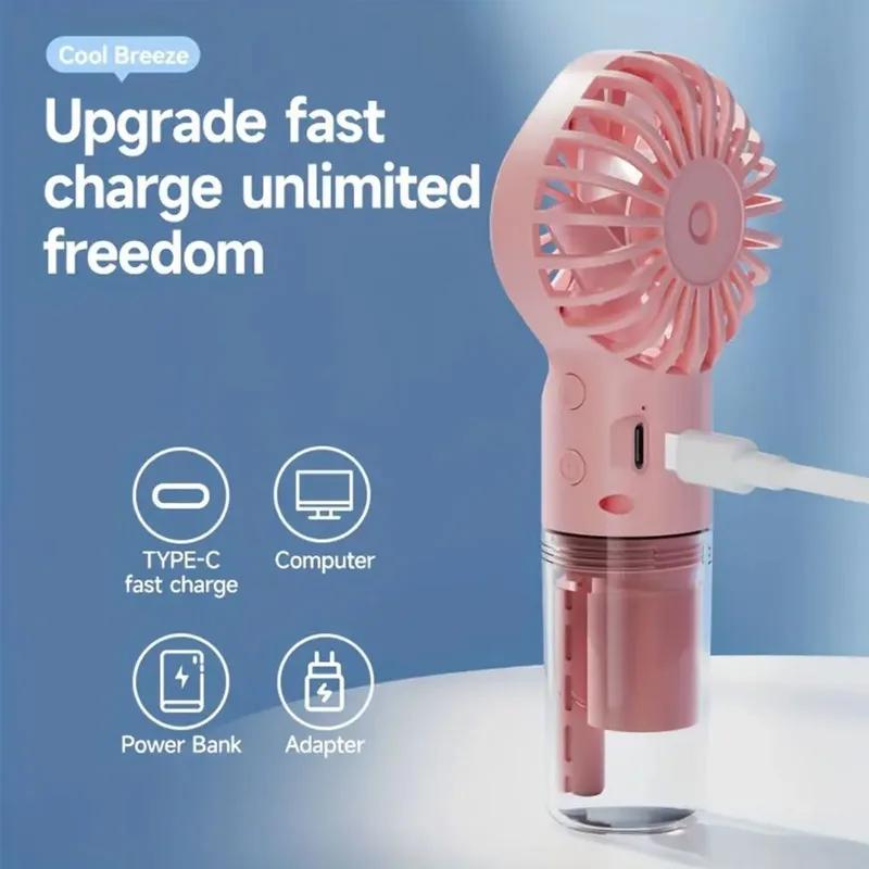 Портативный перезаряжаемый ручной вентилятор для распыления тумана - работающий от батареи USB мини-вентилятор для кемпинга, для путешествий и использования на открытом воздухе