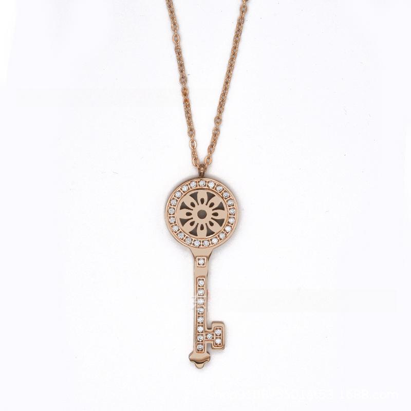 Женское ожерелье из розового золота с ключицей и подвеской-ключом с бриллиантами