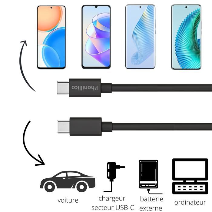 Лот 3 кабеля 20 см USB-C USB-C Черный для Honor Magic 6 / Magic 6 Lite / Magic 6 Pro Phonillico®