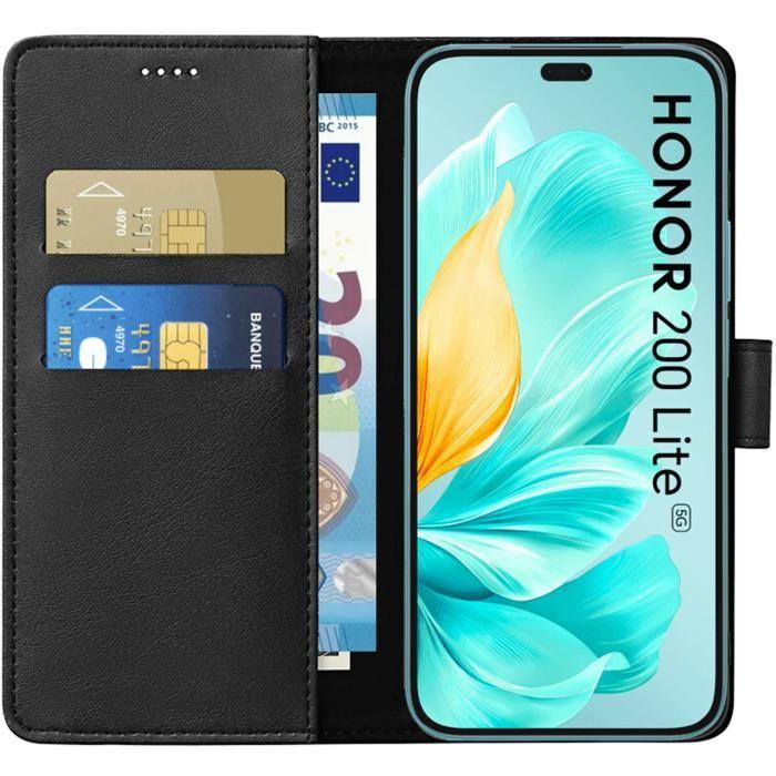Coque - Phonillico® - Honor 200 Lite 5G - Portefeuille Noir - Semi-rigide - Effet Cuir