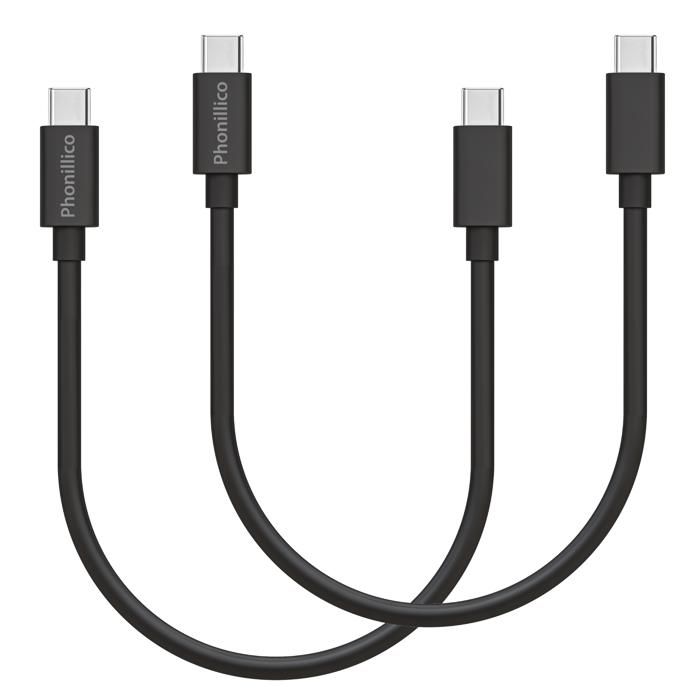 Лот 2 кабеля 20 см USB-C USB-C Черный для Huawei P40 / P40 LITE / P40 LITE 5G / P40 PRO Phonillico®