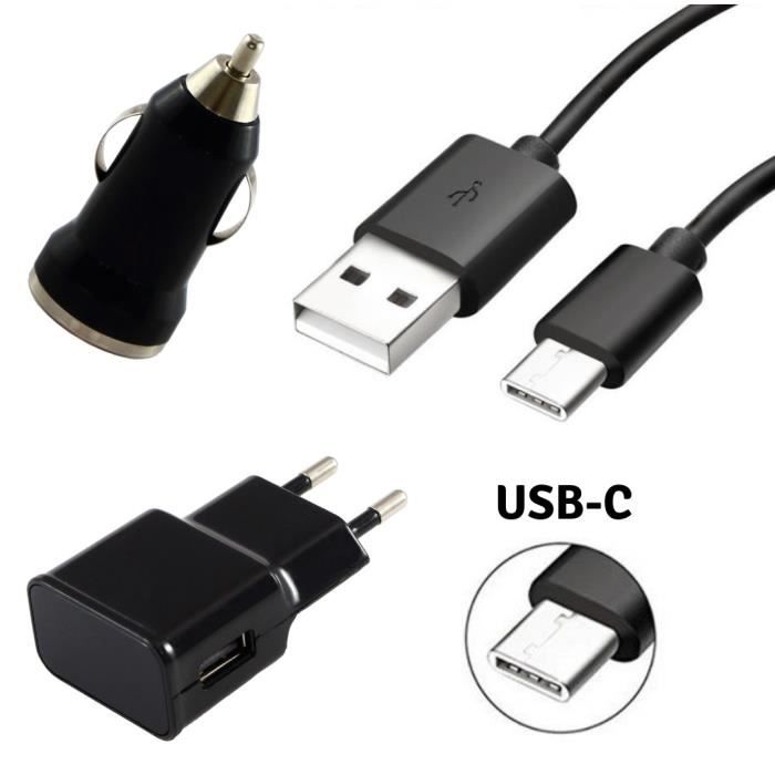 Pack Chargeur 3en1 - Phonillico® - Compatible Huawei NOVA - USB-C 1m - Chargeur 2A - Noir