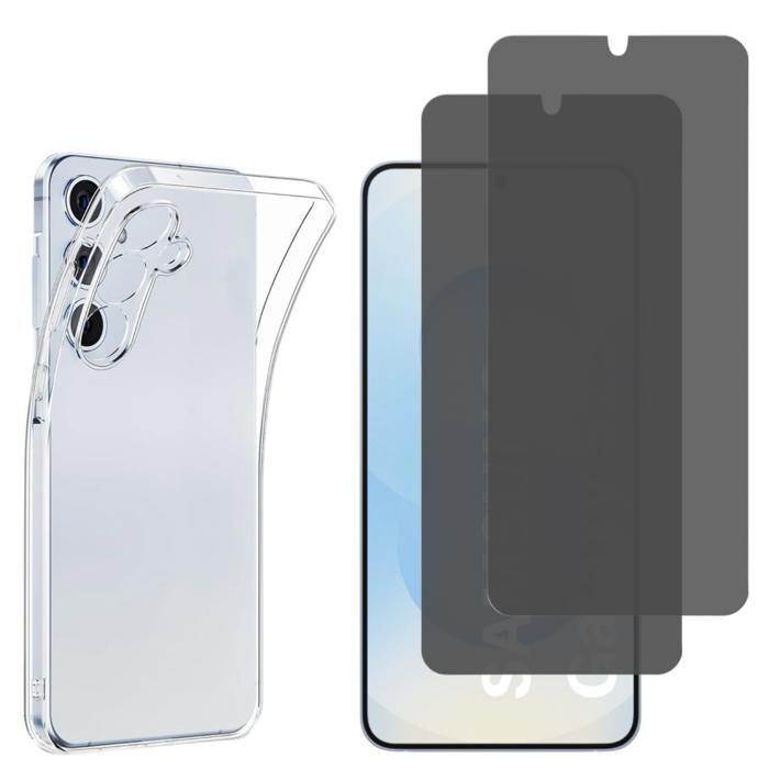 Coque pour Samsung Galaxy S25 - Phonillico® - Souple - 2 Verres Trempé Noir - Anti Espion - Protection Ecran