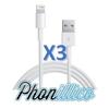 Lot 3 Cables USB [Compatible iPhone 4 - 4S - 3G - 3GS] Chargeur Blanc 1 Metre [Phonillico®]