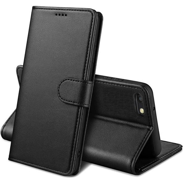 Чехол-кошелек - Phonillico® - iPhone SE 2020 / 7 / 8 - Черный - Эффект кожи - Подставка для видео