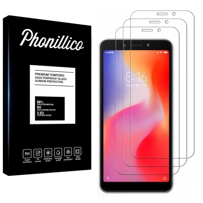 Film de protection d'écran - Phonillico® - Xiaomi REDMI 6 - Pack de 3 - Verre trempé - Résistant aux rayures