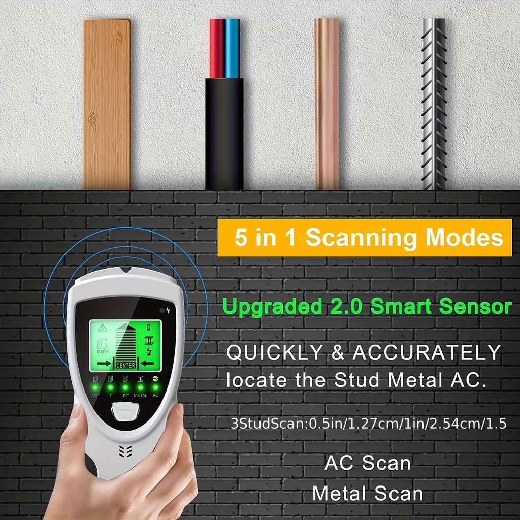5-в-1 детектор-сканер для обнаружения стоек, электронный детектор стоек с микропроцессорным чипом, ЖК-дисплеем высокой четкости, звуковой сигнализацией и точным