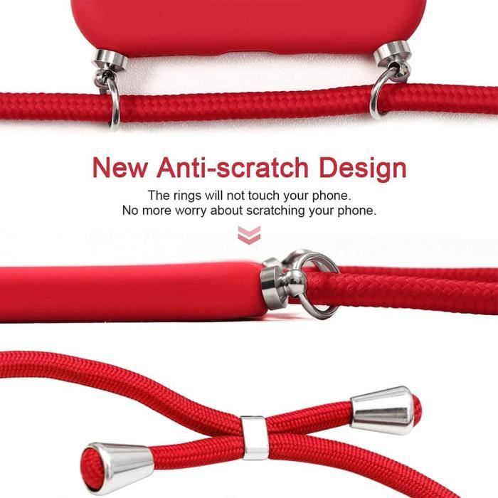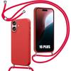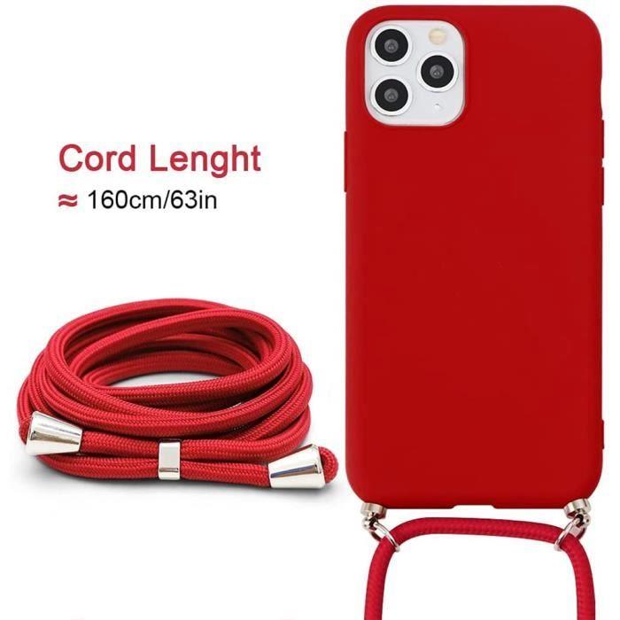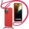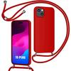 Coque avec Bandoulière - pour iPhone 15 - Rouge - Souple - Anti-Choc - Anti-Rayure