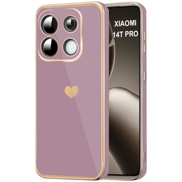 Coque Silicone - Xiaomi - 14T Pro - Antichoc - Souple - Violet avec Motif Cœur