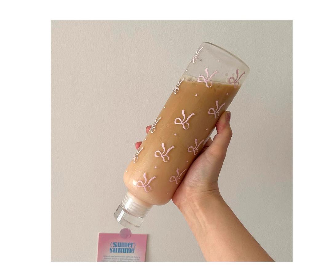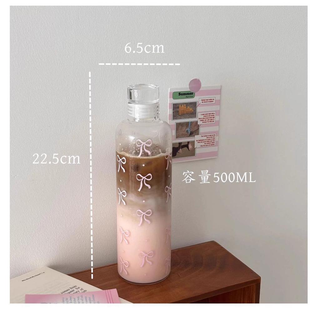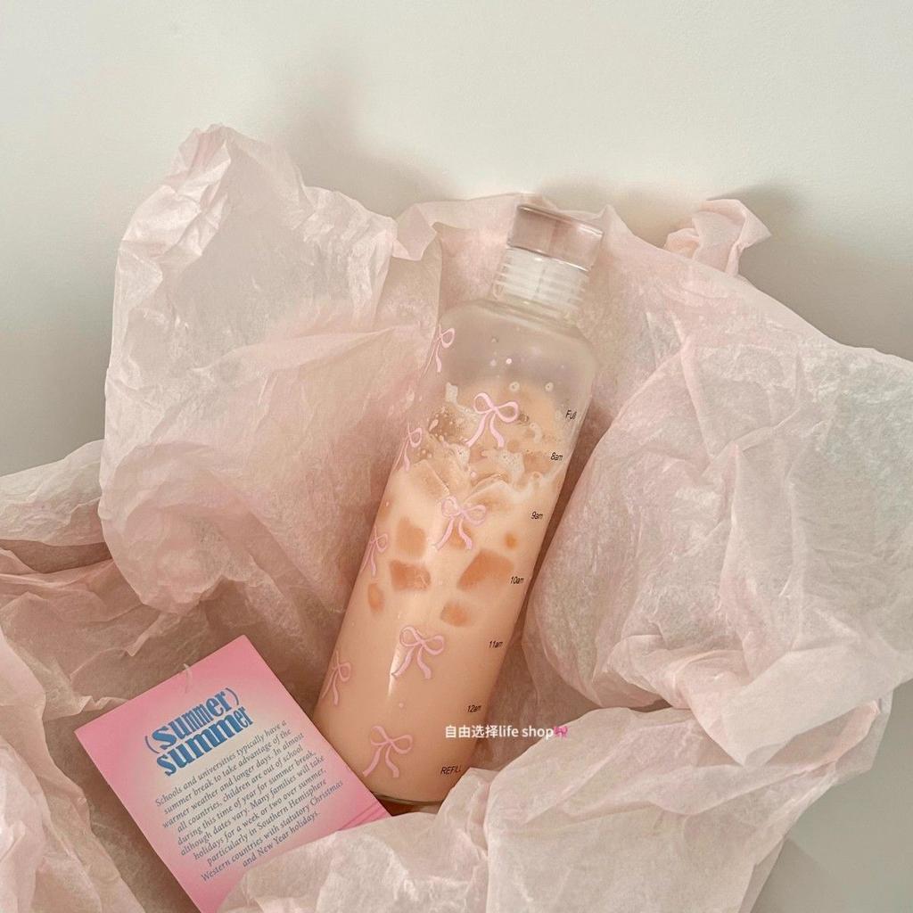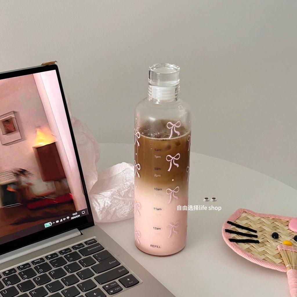 Розовая чашка для воды с бантом, спортивная бутылка для воды с временной шкалой, пластиковый портативный контейнер для воды для пары, противоударная уличная бутылка для воды