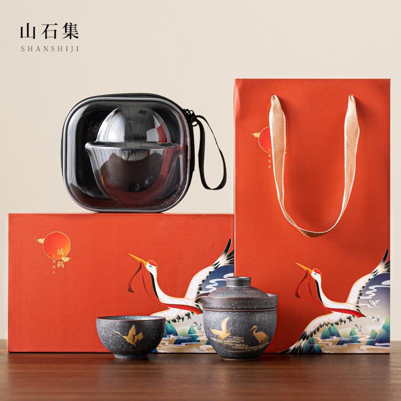 Дзен Чайник и Набор Чашек Комплект 1 Пиала 2 Чашки Бытовой Набор для Приготовления Чая Дорожный Набор для Путешествий Уличная Портативная Сумка Китайский Чайный Набор Принадлежности