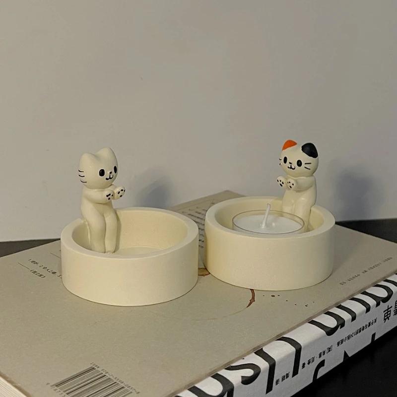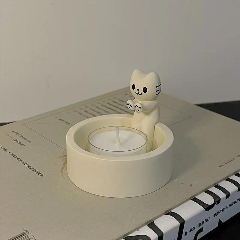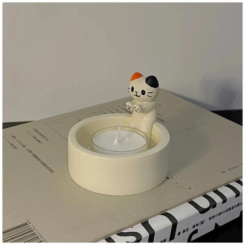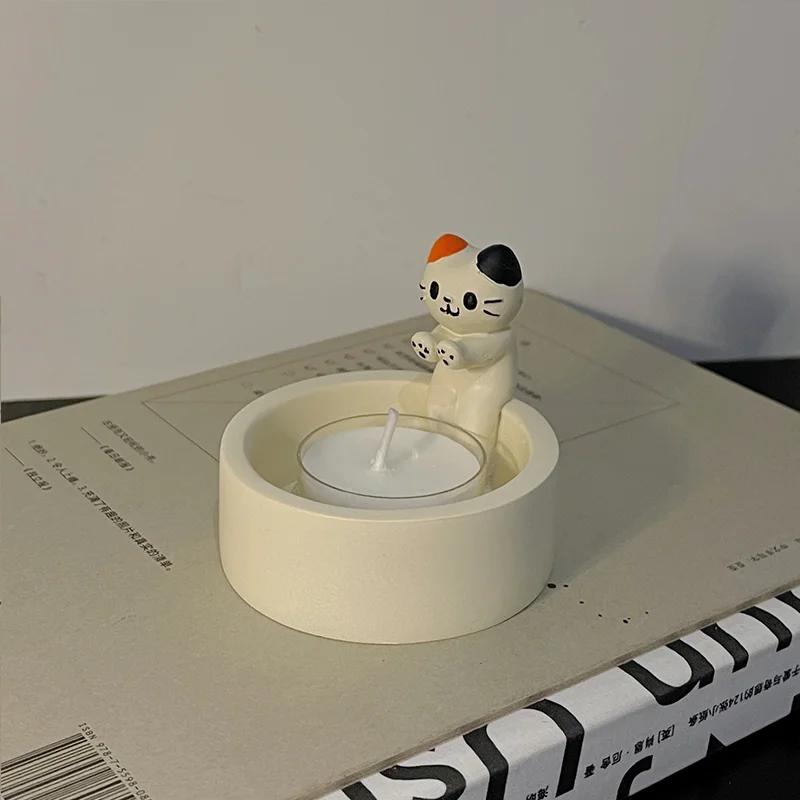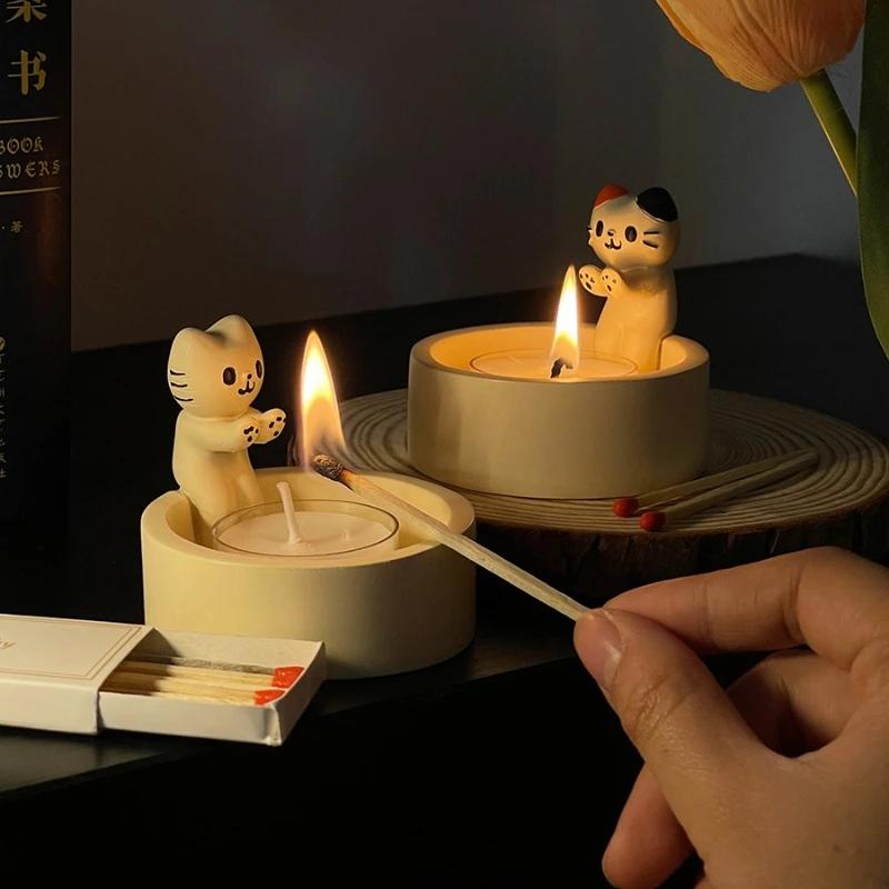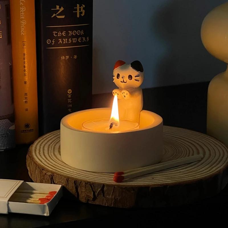 Подсвечник в виде мультяшного котенка, греющего лапки, милый ароматизированный светильник, милый подсвечник в виде жареного кота для ароматерапии