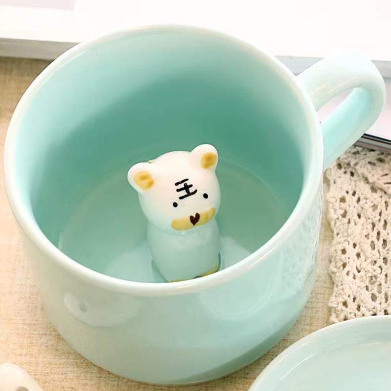 Милая керамическая кружка для кофе с изображением пары животных в 3D-стиле — креативная фарфоровая посуда для напитков, идеально подходит для молока и чая, отличный подарок на день рождения