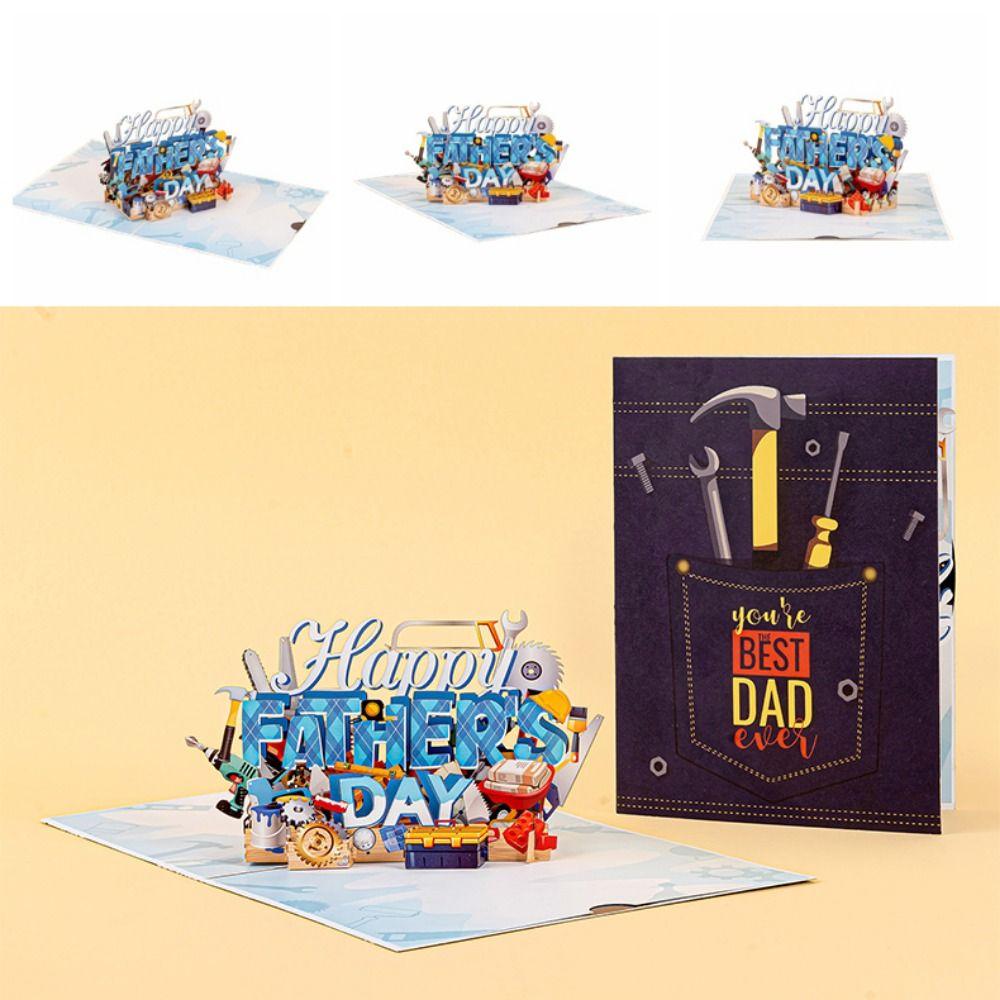 Paper 3D Up Greeting Cards with Envelope Happy Father's Day Card Ornaments Supplies
