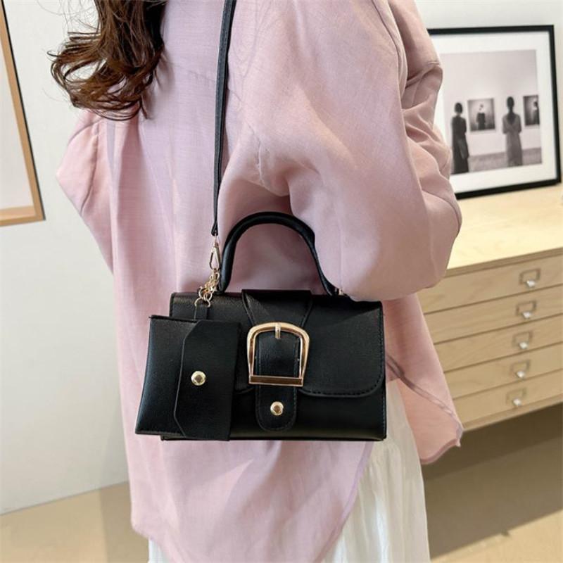 Сумка-тоут с пряжкой-откидной крышкой, сумка через плечо с регулируемым ремешком, стильная женская сумка через плечо с мини-мешочком