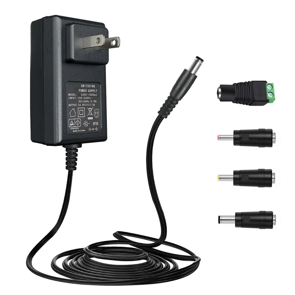 [Экономия и долговечность] --- Уровень VI энергоэффективности (Экономьте 15%-20% на счетах за электроэнергию по сравнению с уровнем V). Компактная конструкция, высококачественные материалы и интеллектуальная микросхема обеспечивают высокую энергоэффективность и долговечность.. Все адаптеры производятся в соответствии со строгими процедурами контроля качества, чтобы гарантировать безопасную и надежную работу на долгие годы.. [Пакет] --- Содержимое пакета: 1 x 24V 1A 24W адаптер питания, 3 x чипа: 3,5 * 1,35 мм, 5,5 * 2,5 мм, 4,0 * 1,7 мм, винтовой клеммный разъем. Гарантия 1 год, пожизненная техническая поддержка. Пожалуйста, дважды проверьте размер вилки перед покупкой.. (Пожалуйста, ознакомьтесь с изображением 5, чтобы избежать покупки по ошибке.)