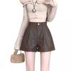 Шорты из искусственной кожи женские осенне-зимние новые с высокой талией и тонкие верхние брюки свободные широкие леггинсы a-word повседневные леггинсы